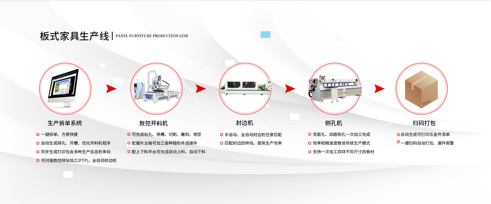 板式家具生產(chǎn)線(xiàn)是目前各大家具廠(chǎng)中常用的設(shè)備加工方式,它是由數(shù)控開(kāi)料機(jī)、封邊機(jī)、數(shù)控鉆孔設(shè)備、拋光機(jī)、覆膜機(jī)、精密鋸、雙頭鉸鏈鉆組合而成一套完整的生產(chǎn)線(xiàn)... 閱讀詳情 >>