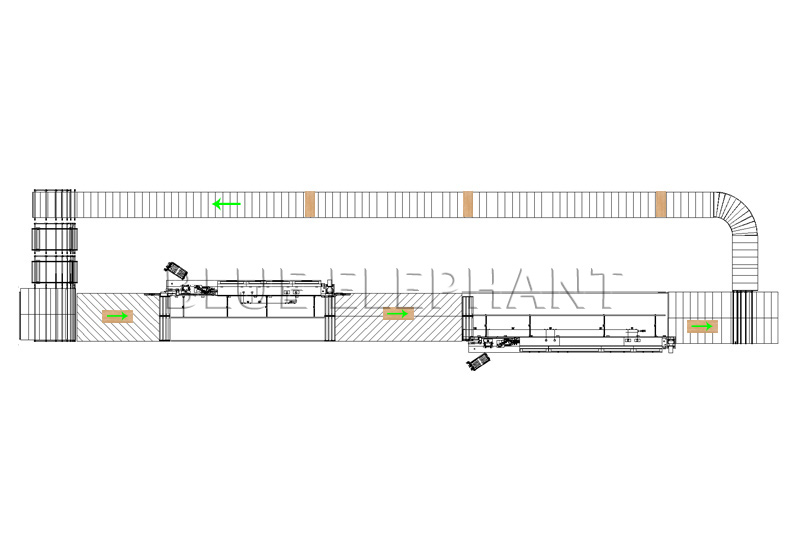 板料由動力滾筒輸送至封邊機---由第一臺封邊機完成第一條邊封邊---第二臺封邊機完成第三條邊封邊---板材回轉再次完成第2、4條邊封邊---完成封邊的板材進入緩存?zhèn)},一次排隊輸入打孔鉆單元。